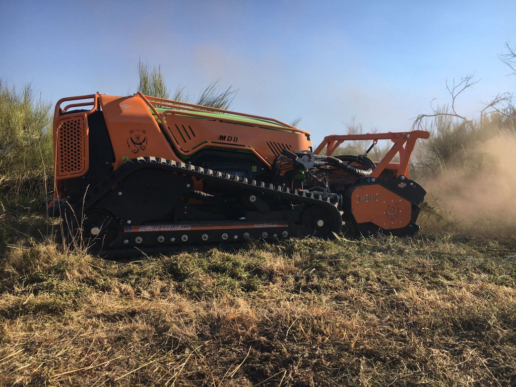 ROBOT DESBROZADOR RADIOCONTROLADO: En nuestro parque móvil contamos con la presencia de 2 robots para realización de trabajos de desbroce y limpieza de terrenos. Con ello se consigue más seguridad, versatilidad y rendimiento a la hora de realizar trabajos de limpieza en zonas menos accesibles a maquinaria.